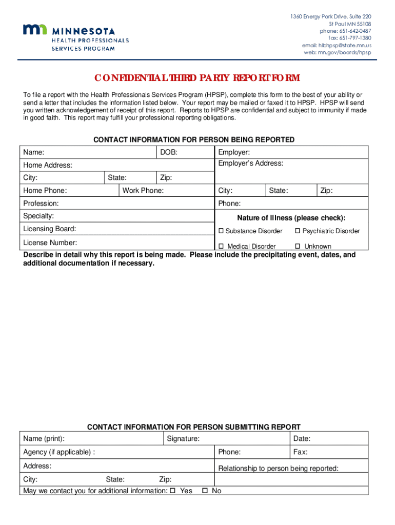 Get the free CONFIDENTIAL THIRD PARTY REPORT FORM - MN.gov