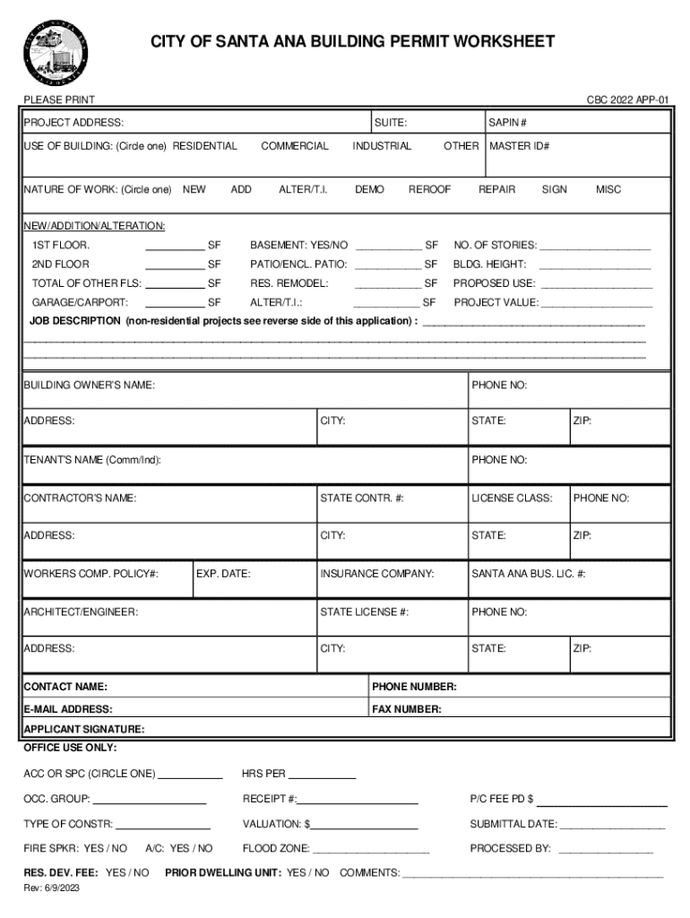 Get the free CITY OF SANTA ANA BUILDING PERMIT WORKSHEET