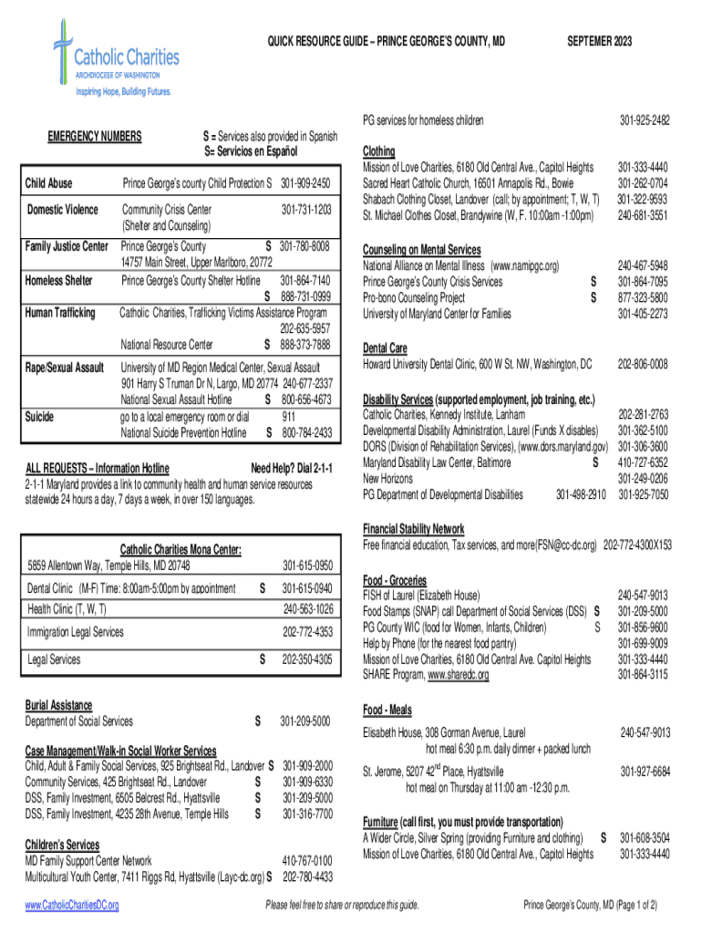 Get the free QUICK RESOURCE GUIDE PRINCE GEORGE'S COUNTY, MD ...