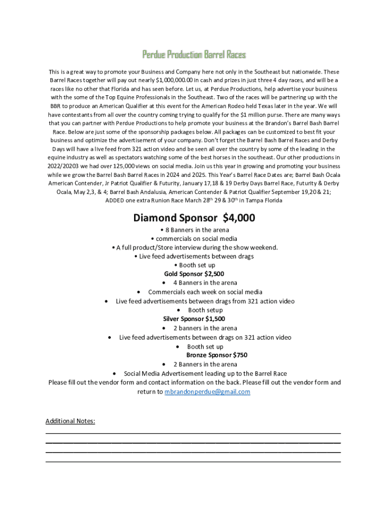 Get the free Perdue Productions BARREL RACE Vender Form