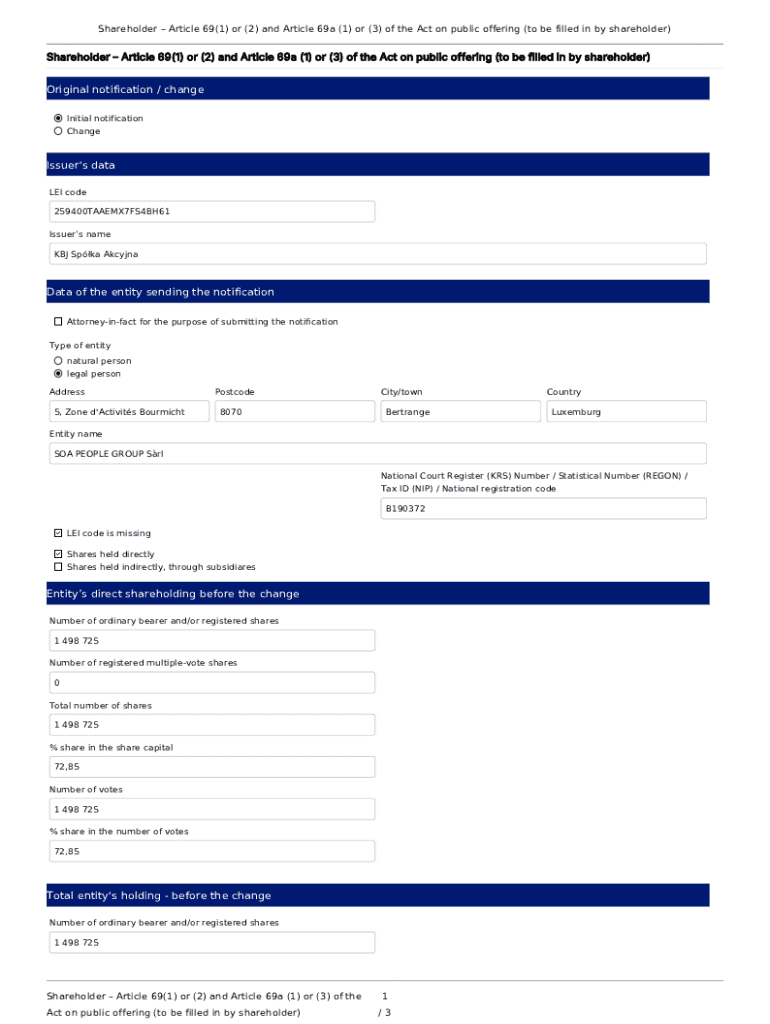 Get the free ShareholderArticle 69(1) or (2) and Article 69a (1) or (3) of the Act on public offe...