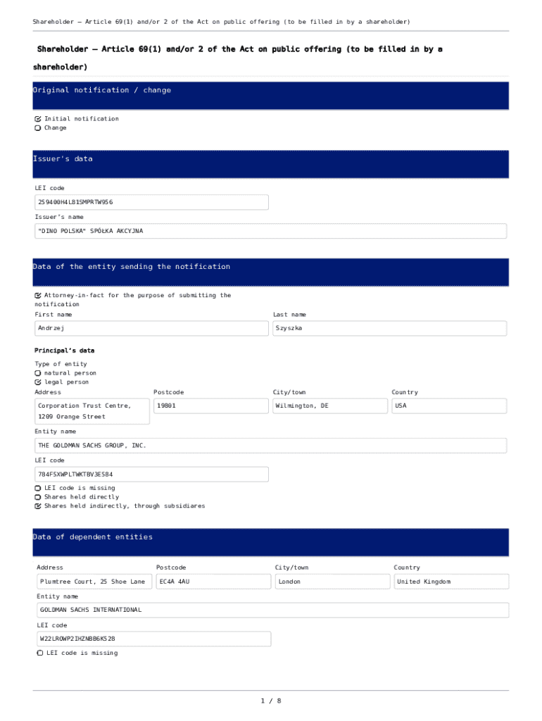 ShareholderArticle 69(1) and/or 2 of the Act on public offering (to be filled in by a shareholder)ShareholderArticle 69(1) and/or 2 of the Act on public offering (to be filled in by a shareholder)