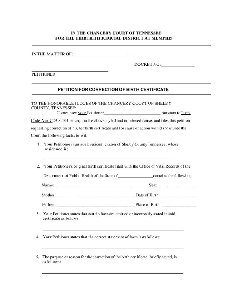 Get the free Petition To Correct Birth Certificate :: Tennessee :: ...