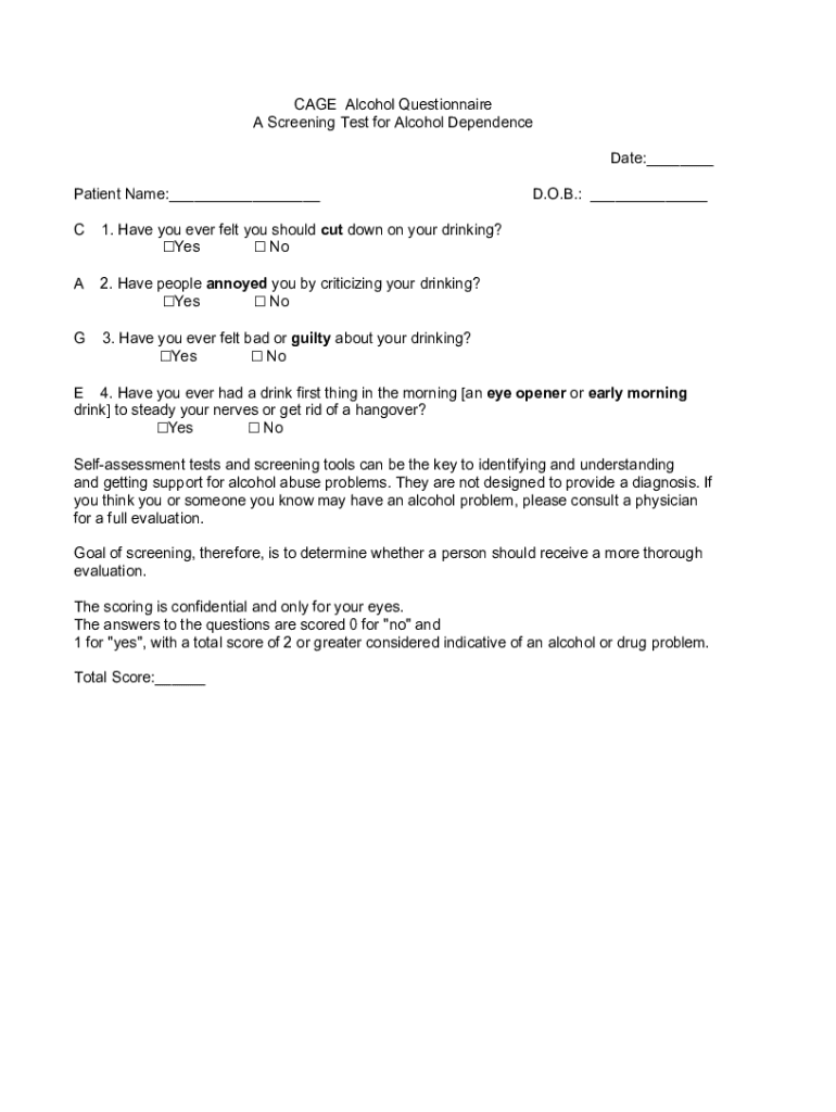 Get the free CAGE Alcohol Questionnaire A Screening Test for Alcohol ...