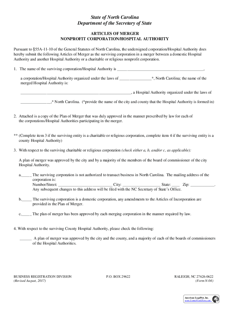 The legal requirements for filing a notice of merger may vary significantly depending on the jurisdiction. In the United States, each state has its own corporate laws governing mergers and acquisitions. For example, North Carolina General Statutes (N.C.G.S.) have specific provisions outlining how corporations must proceed when merging. Understanding these differences is crucial to ensuring compliance and avoiding potential legal issues.