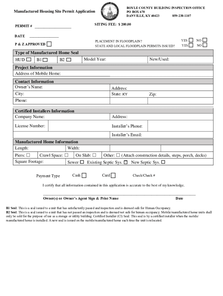 Get the free Type of Manufactured Home Seal HUD B1 Model Year