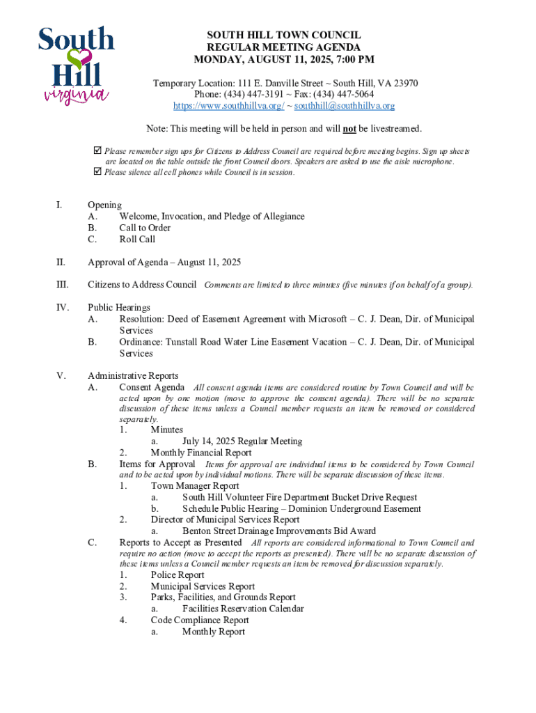 Get the free Town - The South Hill Town Council will meet on Monday ...