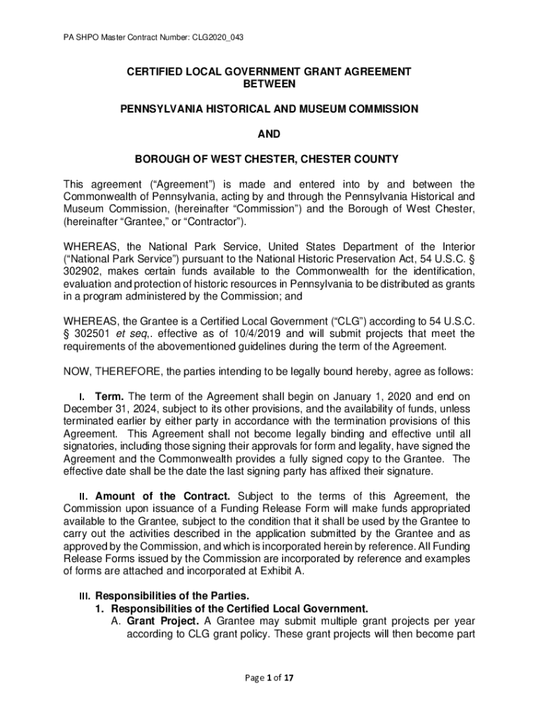 Get the free CERTIFIED LOCAL GOVERNMENT GRANT AGREEMENT ...