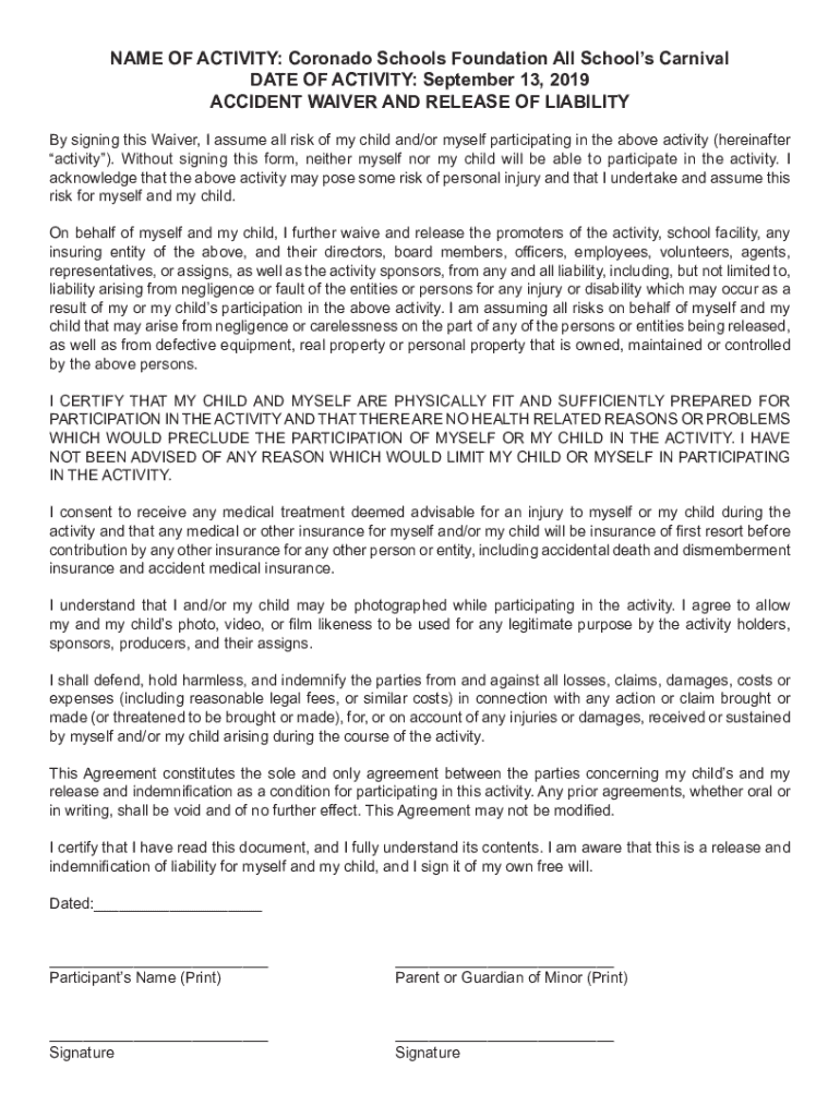 Get the free AGREEMENT AND RELEASE OF LIABILITY WAIVER ...