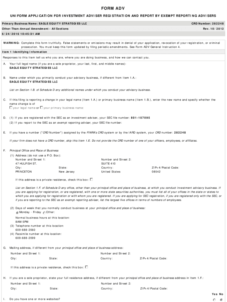 Get the free Primary Business Name: EAGLE EQUITY STRATEGIES LLC