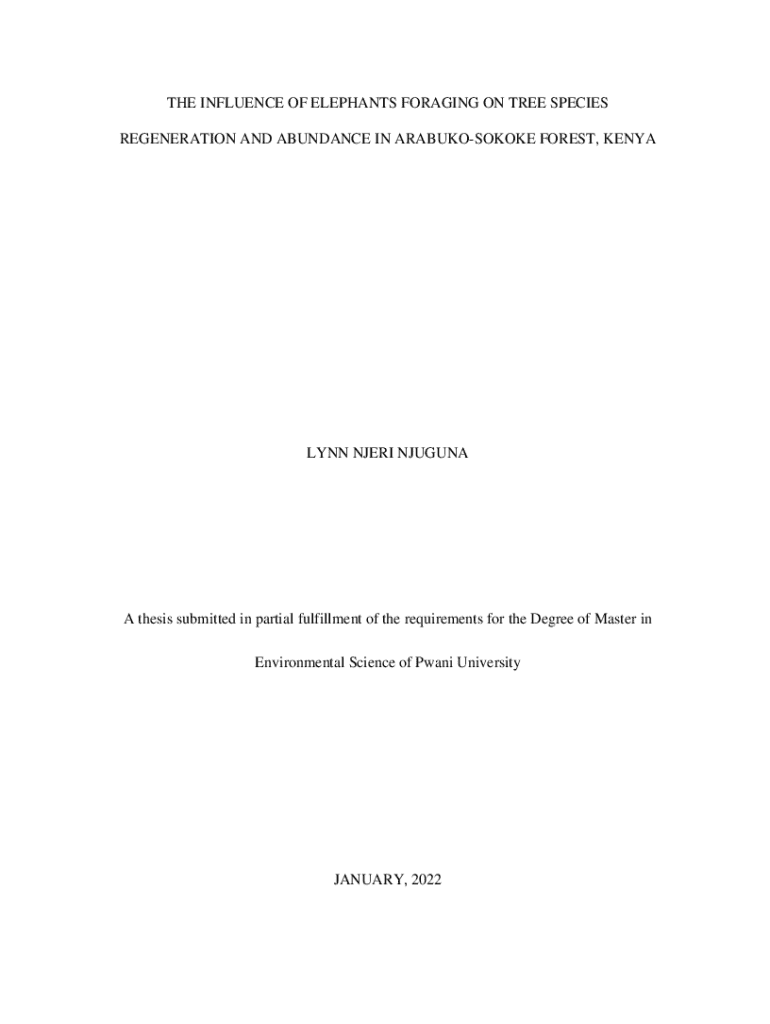 Get the free THE INFLUENCE OF ELEPHANTS FORAGING ON TREE SPECIES ... - elibrary pu ac