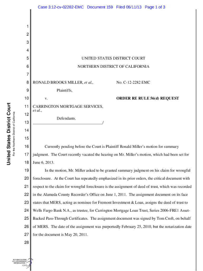 Get the free Case 3:12-cv-02282-EMC Document 159 Filed 06/11/13 ...