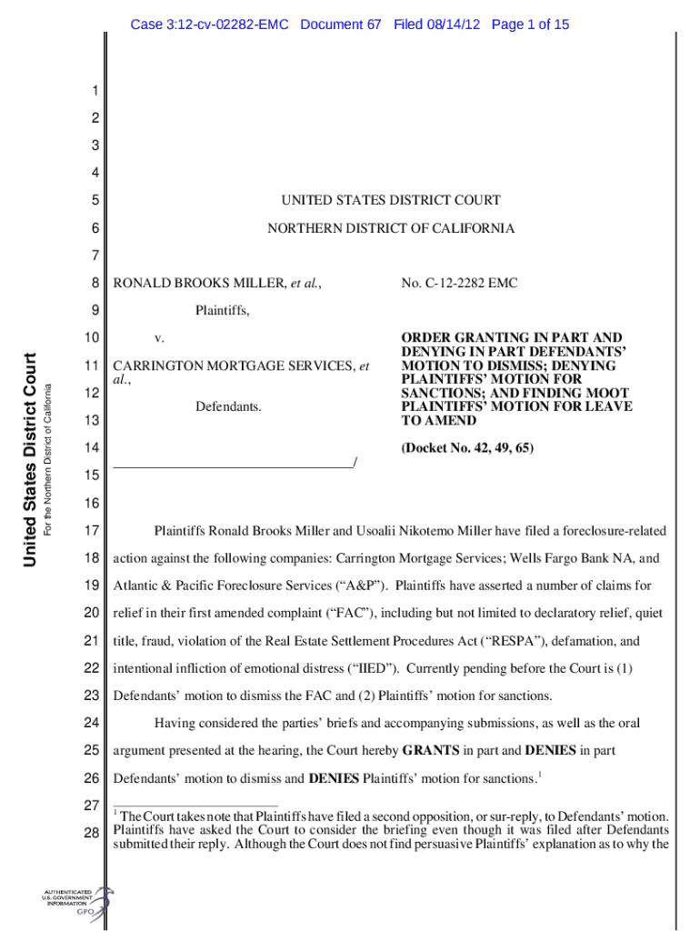 Get the free Case 3:12-cv-02282-EMC Document 108 Filed 02/06/13 ...