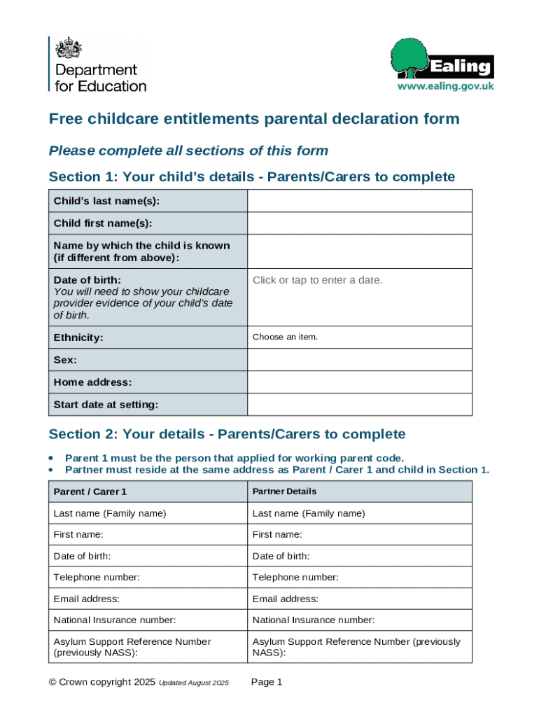 The parent declaration form is a crucial document in the childcare entitlement process. This form serves as the official submission that provides detailed information regarding your household, income, and needs. It ensures that you are recognized as eligible for the childcare benefits available in your locality.