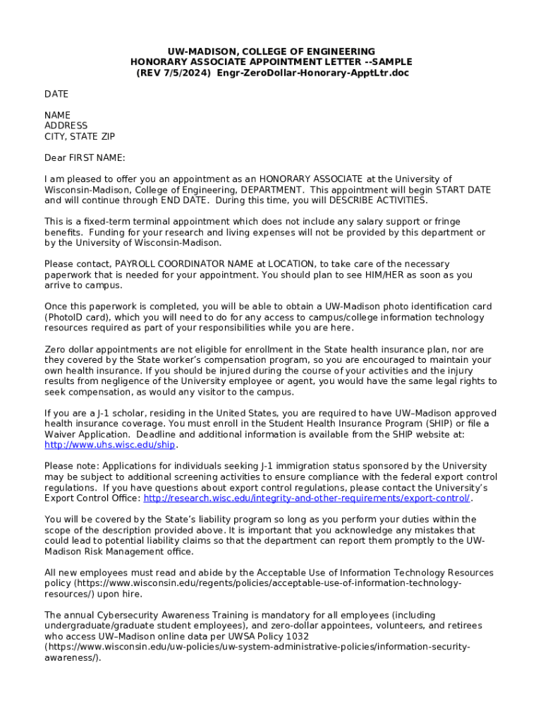 Moreover, having a standardized form is significant for regulatory compliance, as it allows institutions to maintain consistency in hiring practices. Whether it’s an entry-level research position or a highly specialized role, the appointment form encapsulates essential information that protects the rights and responsibilities of both the research associate and the academic staff involved, such as deans and research professors.