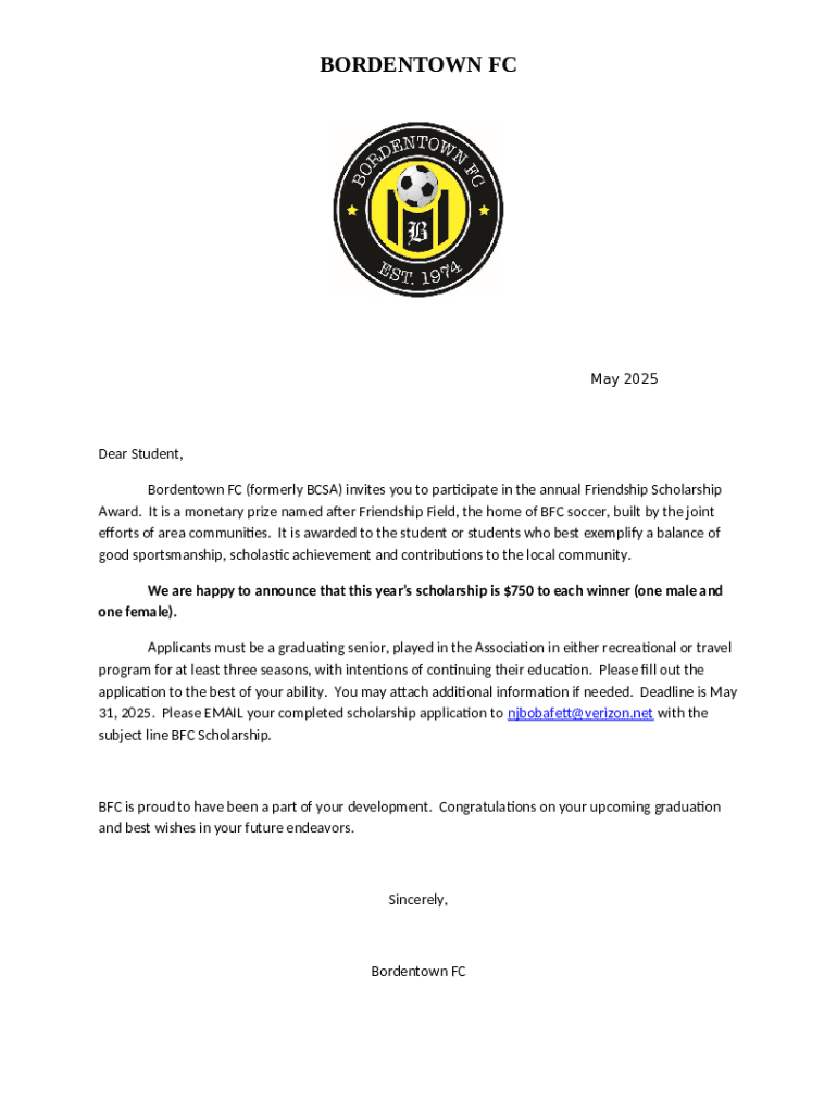 What is Bordentown FC Is Accepting Applications for Friendship ... Form?