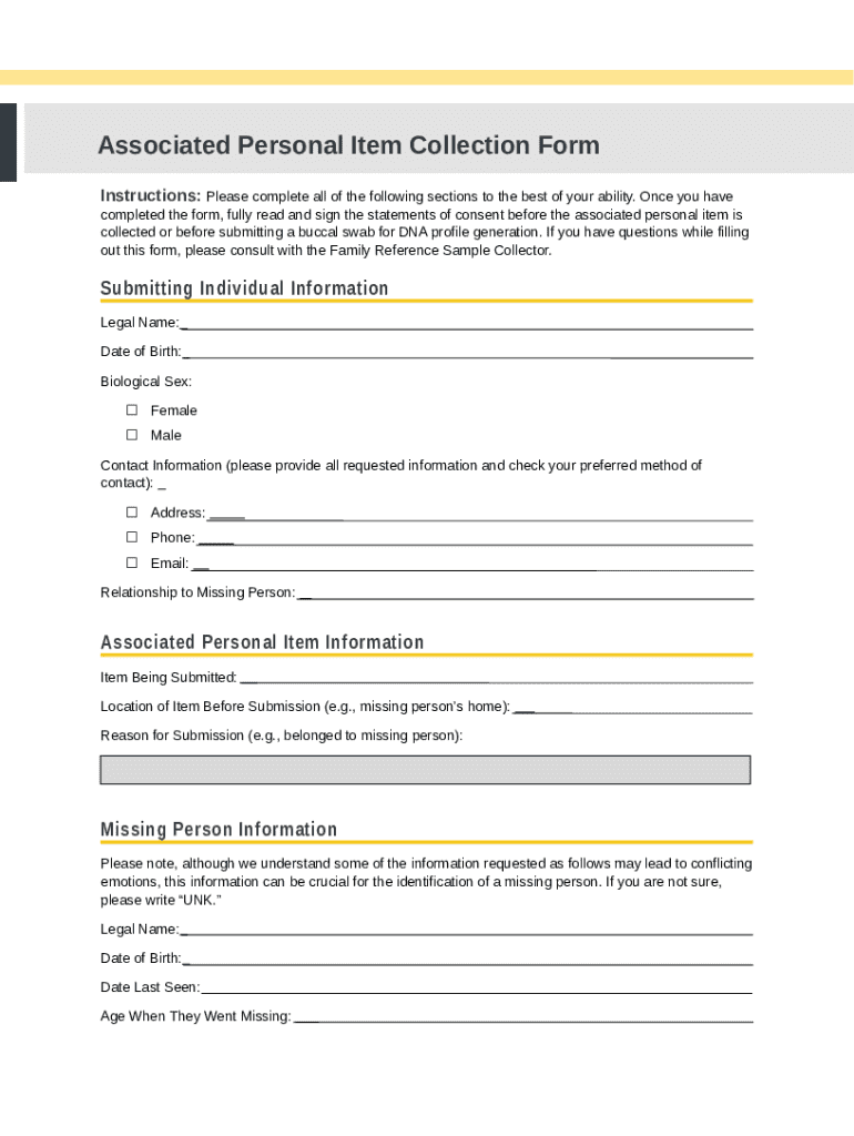 An associated personal item collection form serves as a structured document designed to help individuals and teams organize and manage personal belongings or items relevant to specific activities or events. Its primary purpose is to provide a clear inventory that allows users to track, itemize, and manage their possessions efficiently. Whether it’s for moving, for business inventory, or for personal organization, keeping a collection of personal items neatly organized significantly reduces stress and aids in effective asset management.
