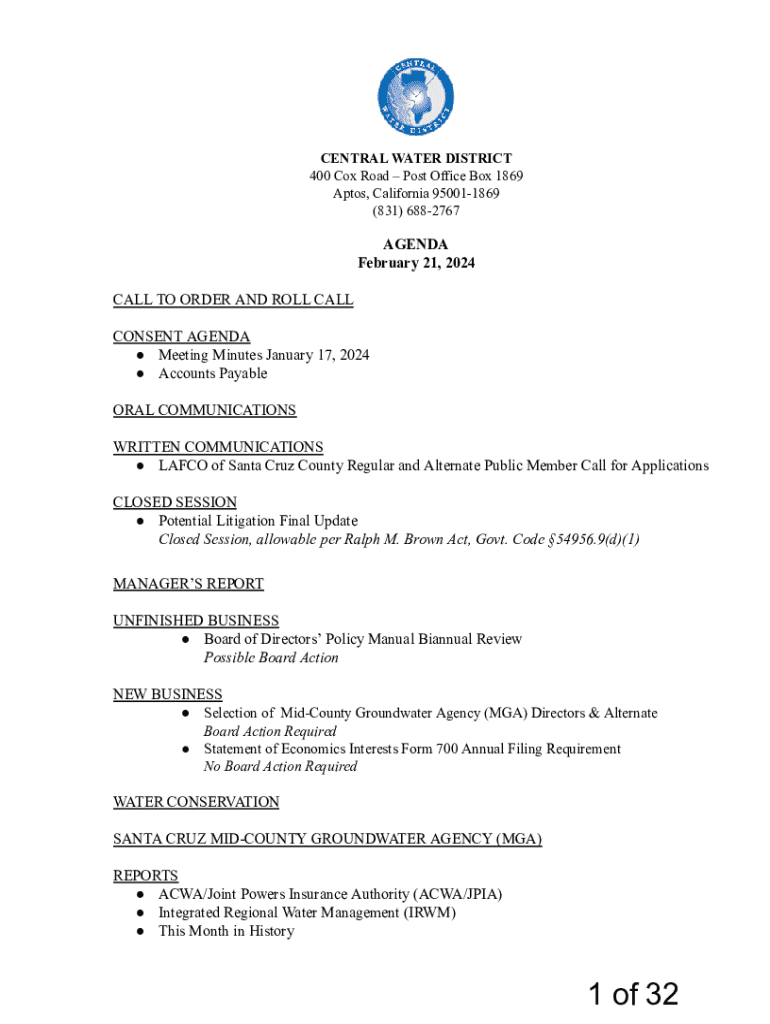 Your Guide to the Central Water District Form on pdfFiller