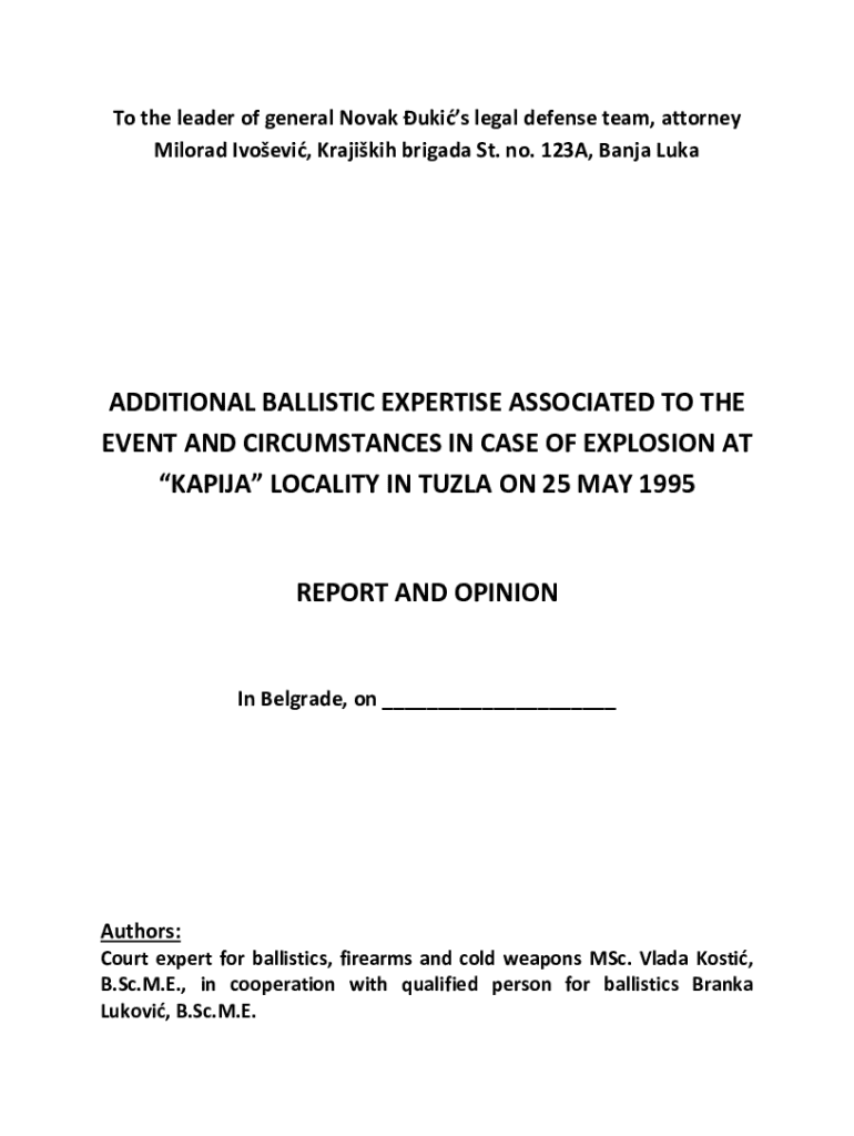 Get the free ADDITIONAL BALLISTIC EXPERTISE ASSOCIATED TO THE ...