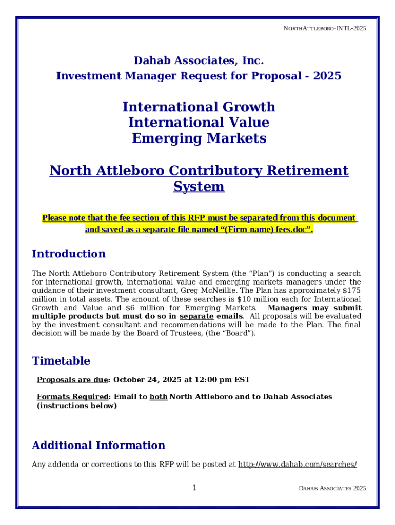 What is North Attleboro issues RFP for international equity managers Form?