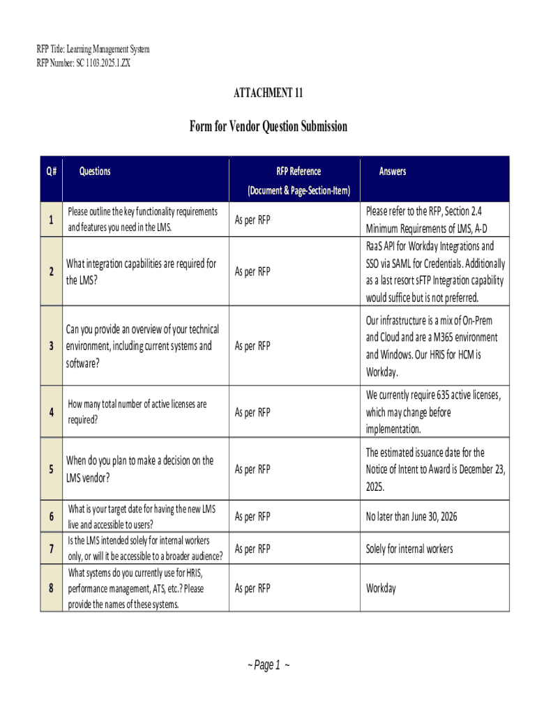 Many individuals seeking to complete the RFP Number SC 1103 Form may have questions about various aspects of the submission process. Common queries include clarity on submission deadlines, required attachments, and specific procedural questions connected to the RFP process itself.