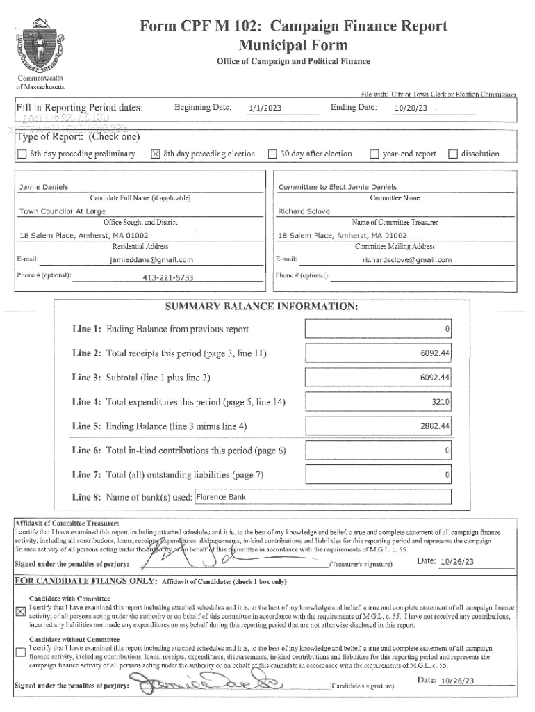 Form CPF M 102: Campaign Finance Report Municipal Form.:wcia?II_Office of Campaign and Political FinanceCommonwealthof Massachusetts File with: City or Towit Clerk or Election CommissionBeginning