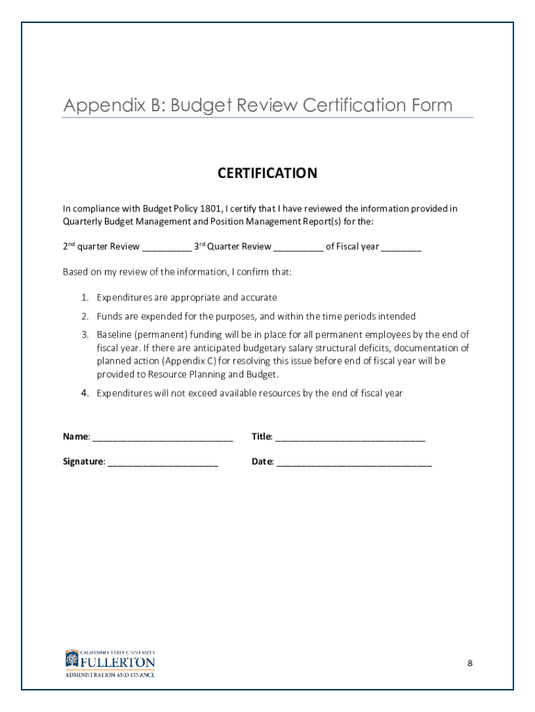 Get the free Appendix B: Budget Review Certification Form