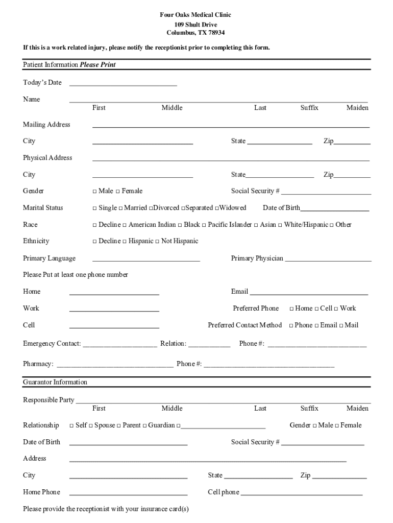 Get the free Demographics-Form-Four-Oaks-Clinic.pdf