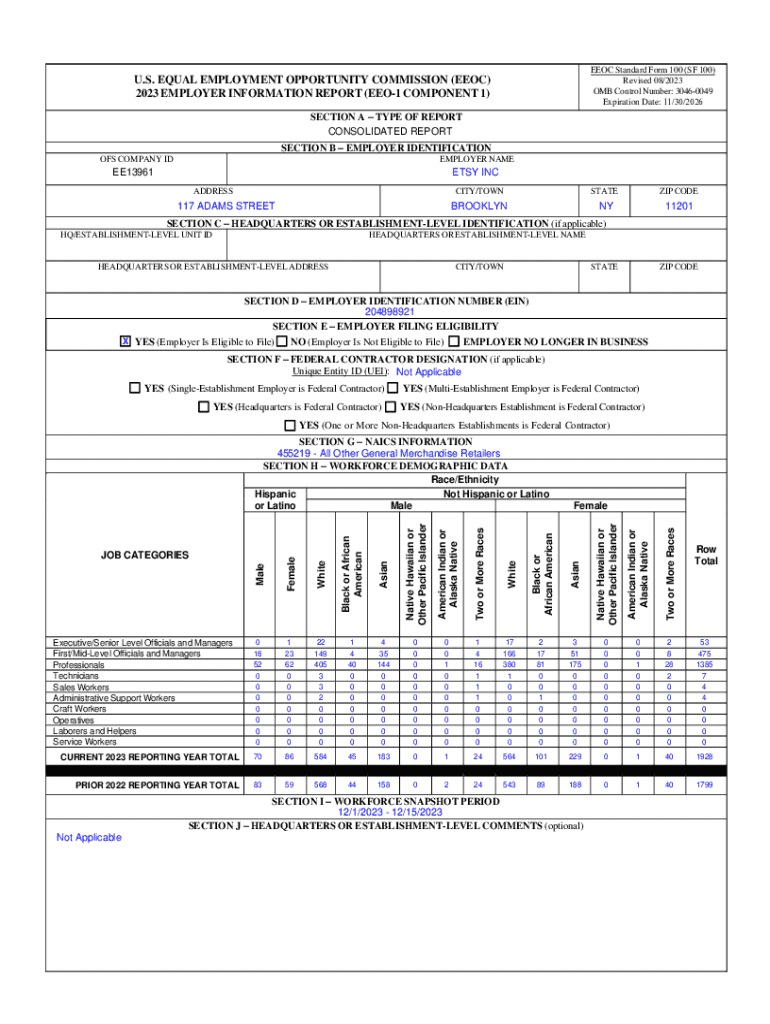 EEOC Standard Form 100 (SF 100) Revised 08/2023 OMB Control Number: 30460049 Expiration Date: 11/30/2026U.S. EQUAL EMPLOYMENT OPPORTUNITY COMMISSION (EEOC) 2023 EMPLOYER INFORMATION REPORT (EEO1 COMPONENT