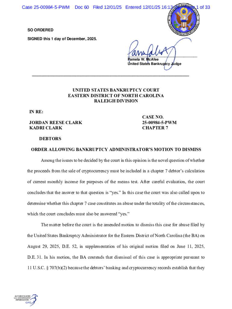 Case 25009845PWMDoc 60 Filed 12/01/25 Entered 12/01/25 16:13:26Page 1 of 33SO ORDERED SIGNED this 1 day of December, 2025.___ Pamela W. McAfee United States Bankruptcy Judge___ UNITED STATES BANKRUPTCY