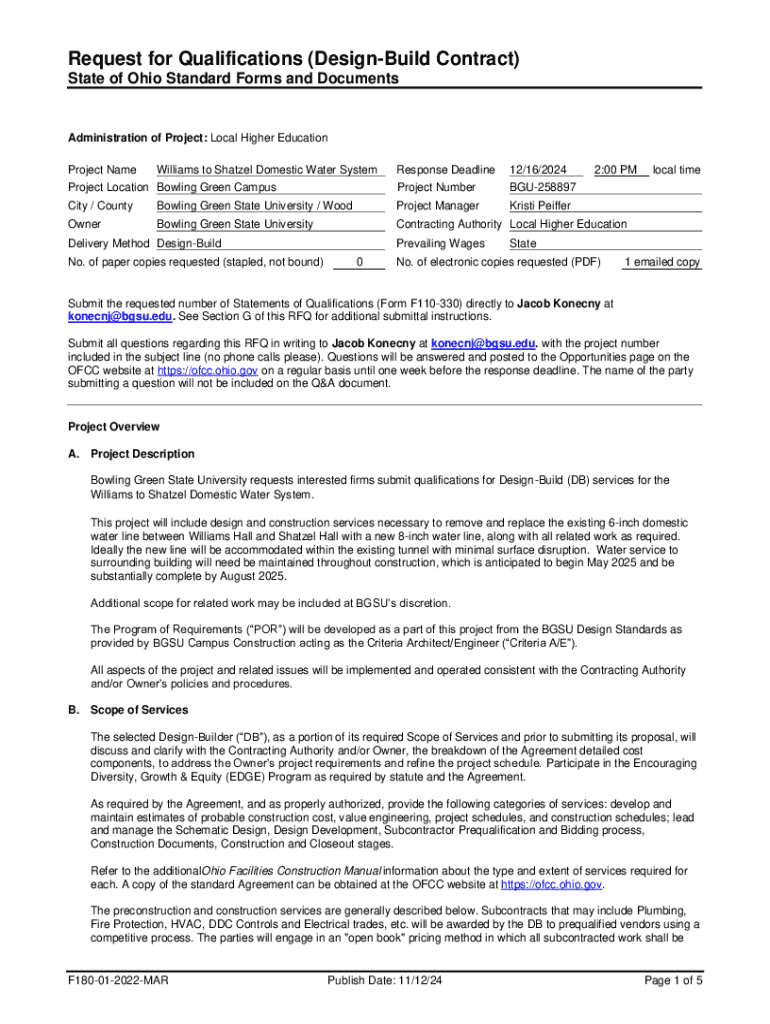 Request for Qualifications (DesignBuild Contract) State of Ohio Standard Forms and DocumentsAdministration of Project: Local Higher Education Project NameResponse Deadline12/16/2024Project Location