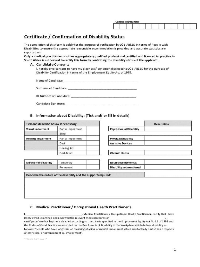Get the free Certificate / Confirmation of Disability Status
