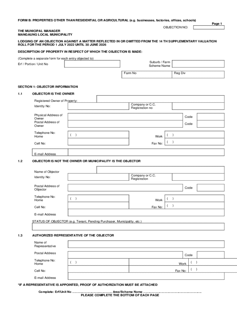 Get the free 1P a g e OBJECTION FORM B (ENG)