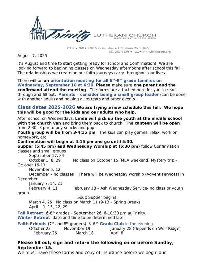 Experience Worship Together at Trinity Lutheran Church word template: frequently asked questions