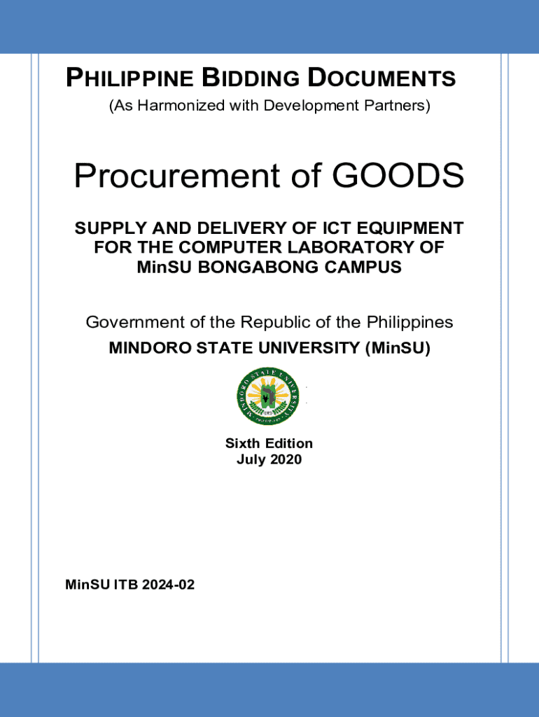 PHILIPPINE BIDDING DOCUMENTS (As Harmonized with Development Partners)Procurement of GOODS SUPPLY AND DELIVERY OF ICT EQUIPMENT FOR THE COMPUTER LABORATORY OF MinSU BONGABONG CAMPUS Government of