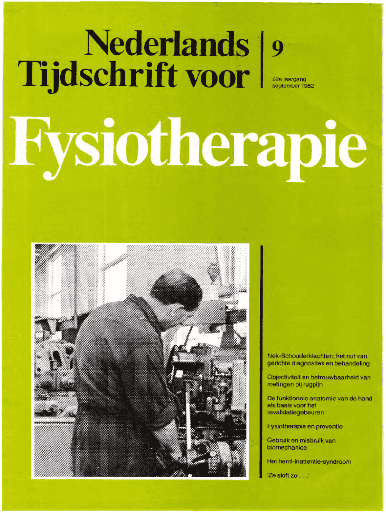Nederlands 9 Tijdschrift voor92e jaargang september 1982NekSchouderklachten; het nut van gerichte diagnostiek en behandeling Objectiviteit en betrouwbaarheid van metingen bij rugpijn De funktlonele
