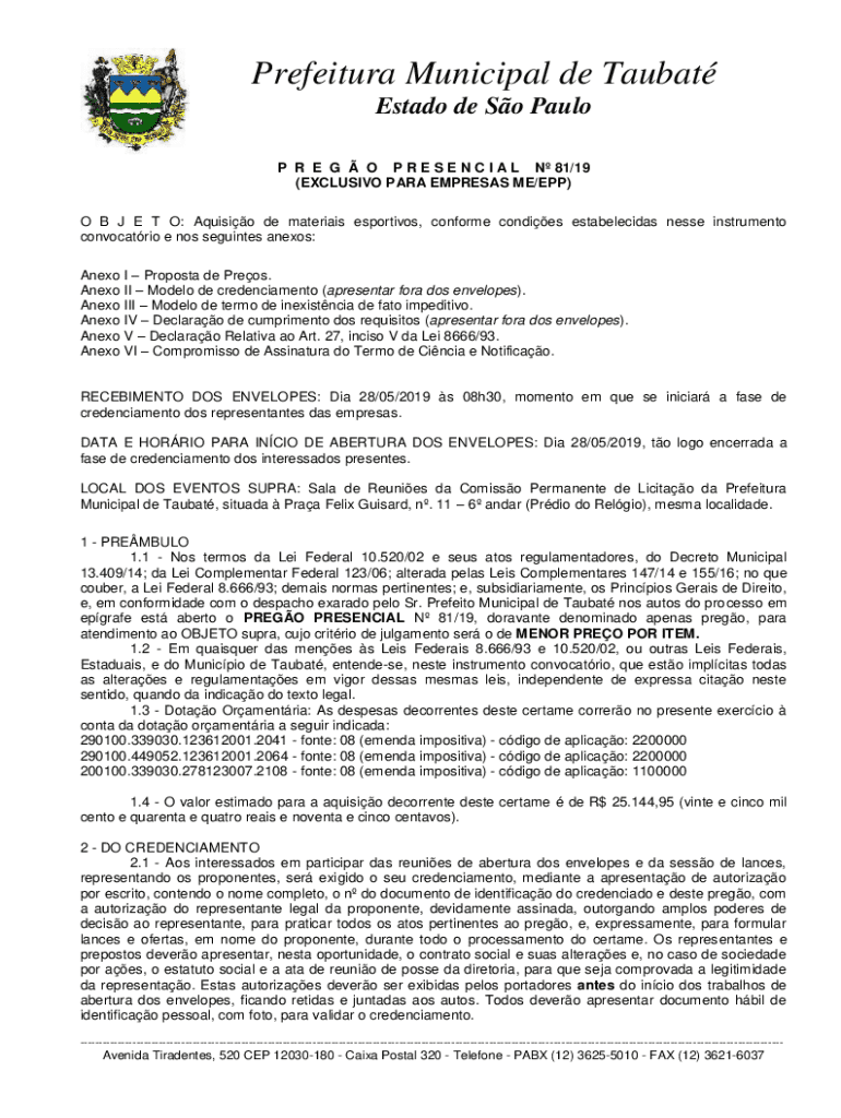 Obtenha o gratuito P R E G O P R E S E N C I A L N 81/19