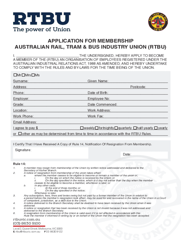 Get the free APPLICATION FOR MEMBERSHIP AUSTRALIAN RAIL ...