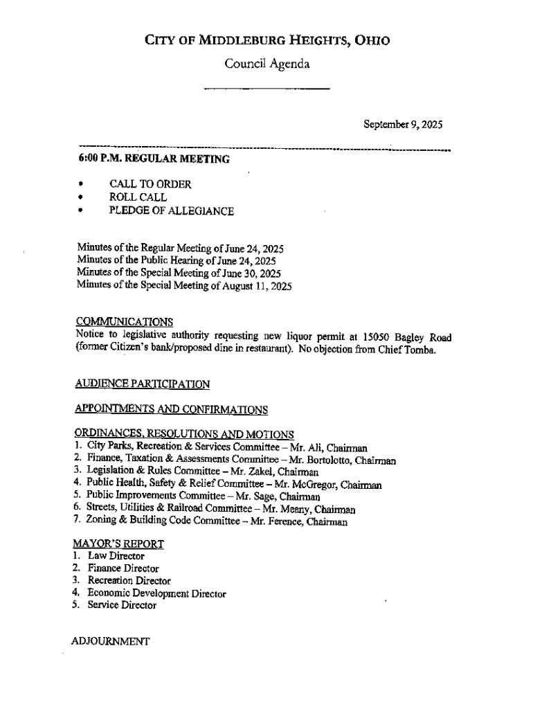 Get the free City of Middleburg Heights, Ohio Council Agenda 4. Public ...
