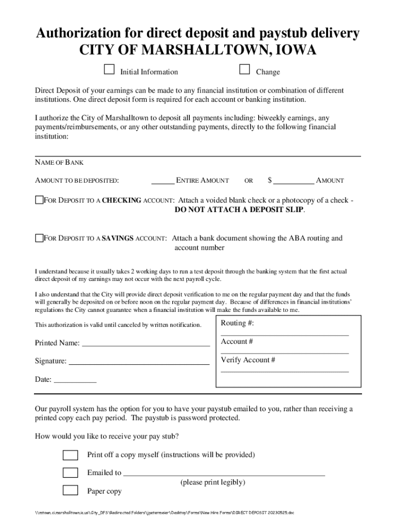 Editing and customizing the Iowa Direct Deposit Authorization Form