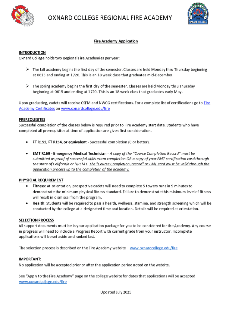 The 'Oxnard College Fire Academy fire form' is an essential document for individuals wishing to enroll in the program. This form serves multiple purposes—it collects vital information about the applicant, summarizes their qualifications, and outlines their intentions for joining the Academy.