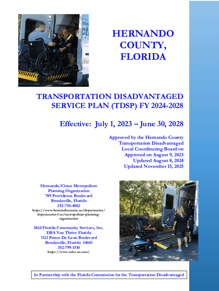 Get the free TDLCB - Transportation Disadvantaged Service Plan - FY24-28