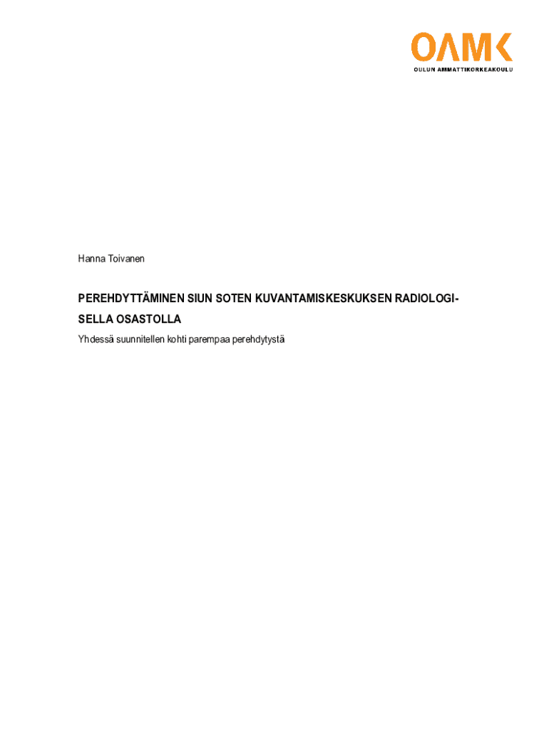 Hanna ToivanenPEREHDYTTMINEN SIUN SOTEN KUVANTAMISKESKUKSEN RADIOLOGISELLA OSASTOLLA Yhdess suunnitellen kohti parempaa perehdytystPEREHDYTTMINEN SIUN SOTEN KUVANTAMISKESKUKSEN RADIOLOGISELLA OSASTOLLA