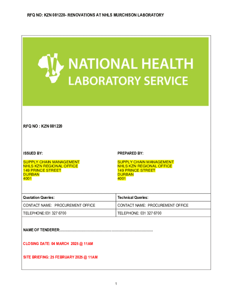 Get the free Request for Renovations at NHLS Murchison Lab