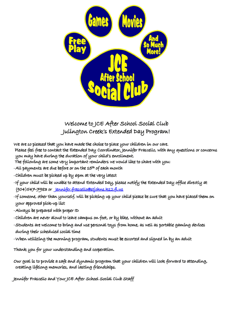 Get the free Julington Creeks Extended Day Program - www-jce stjohns k12 fl
