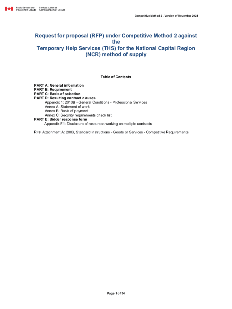 Competitive Method 2Version of November 2024Request for proposal (RFP) under Competitive Method 2 against the Temporary Help Services (THS) for the National Capital Region (NCR) method of supplyTable