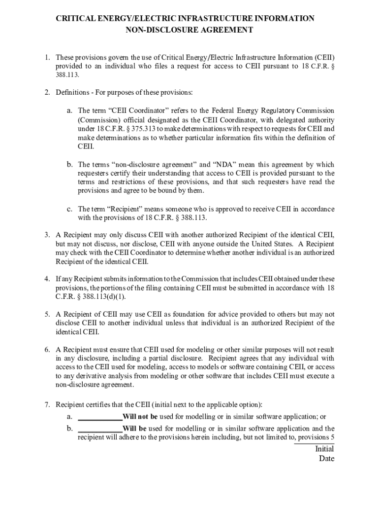 CRITICAL ENERGY/ELECTRIC INFRASTRUCTURE INFORMATION NONDISCLOSURE AGREEMENT 1. These provisions govern the use of Critical Energy/Electric Infrastructure Information (CEII) provided to an individual