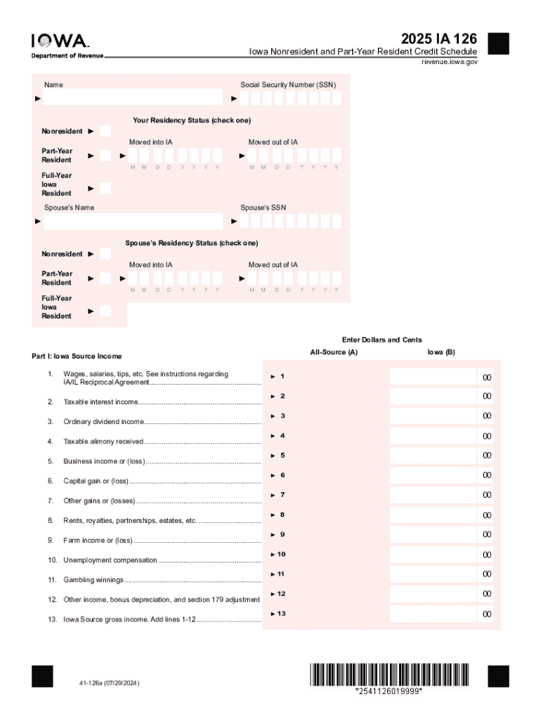 The 2025 IA 126 Form is a tax document specifically designed for nonresident and part-year resident taxpayers in Iowa. It serves as a crucial tool for reporting income earned within the state and determining the appropriate tax liability. Understanding the nuances of this form is essential for compliance and to avoid potential penalties.