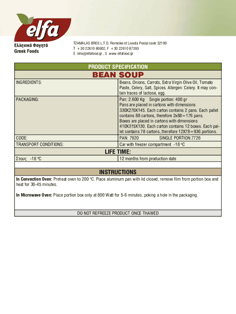 Get the free TZAMALAS BROS, ELFA GREEK FOOD-frosen ready meals