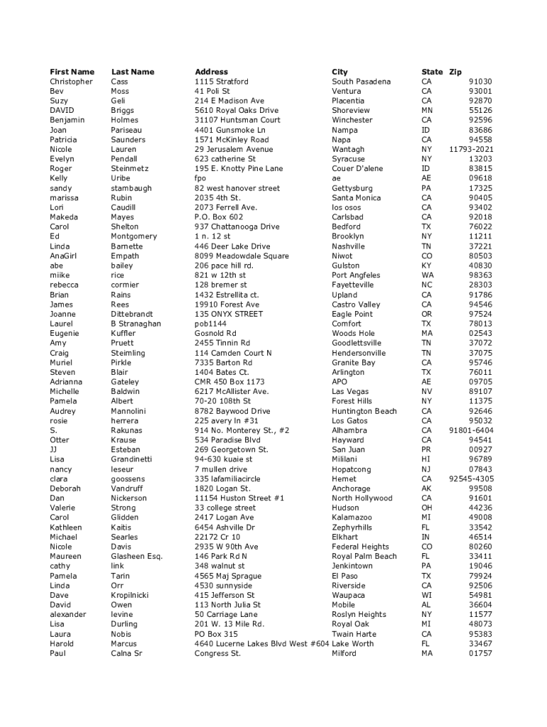 Get the free First Name Last Name City State Zip Code Comment Scott ...